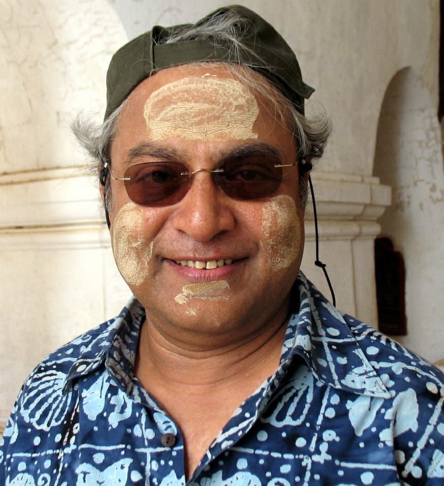 এক বার্মিজ মেয়ে হঠাৎ মুখে লাগিয়ে দিয়েছিল পারম্পরিক রোদ আটকানোর প্রলেপ 'তানাখা' ; মান্দালয়, মিয়ানমার, নভেম্বর ২০০৭