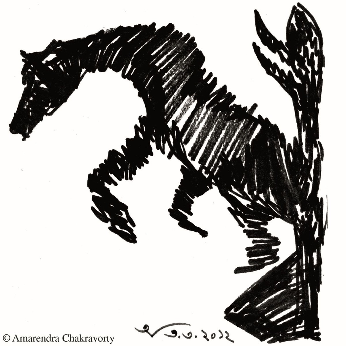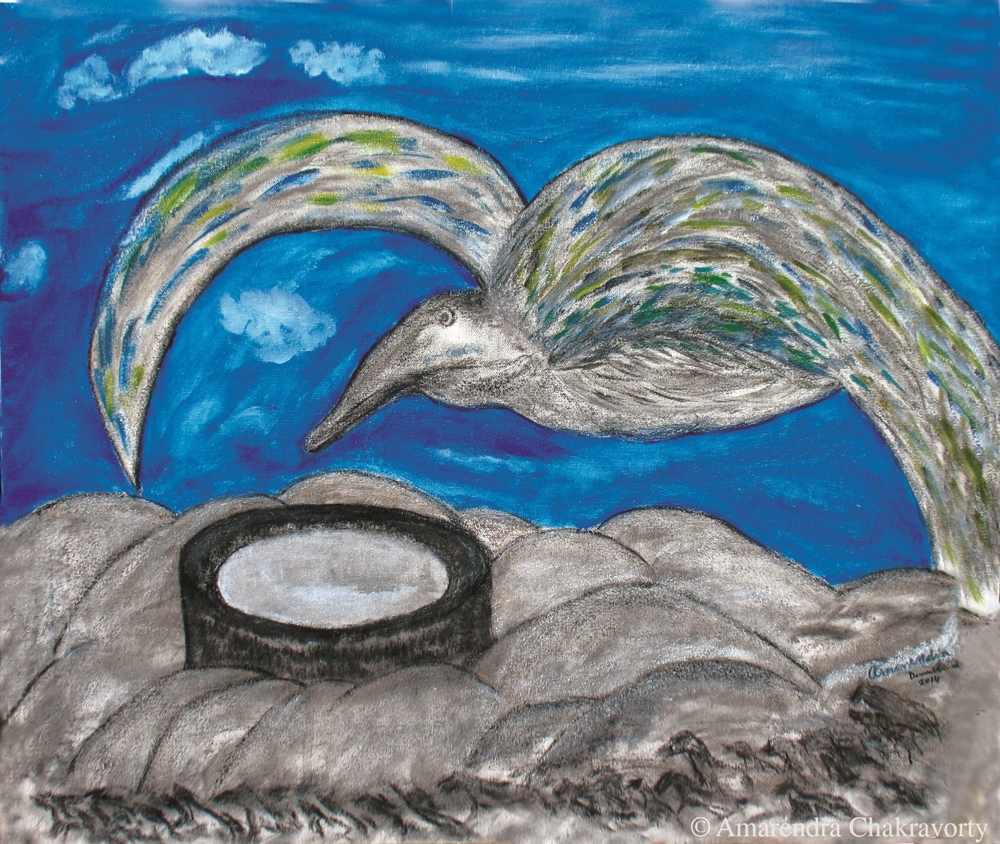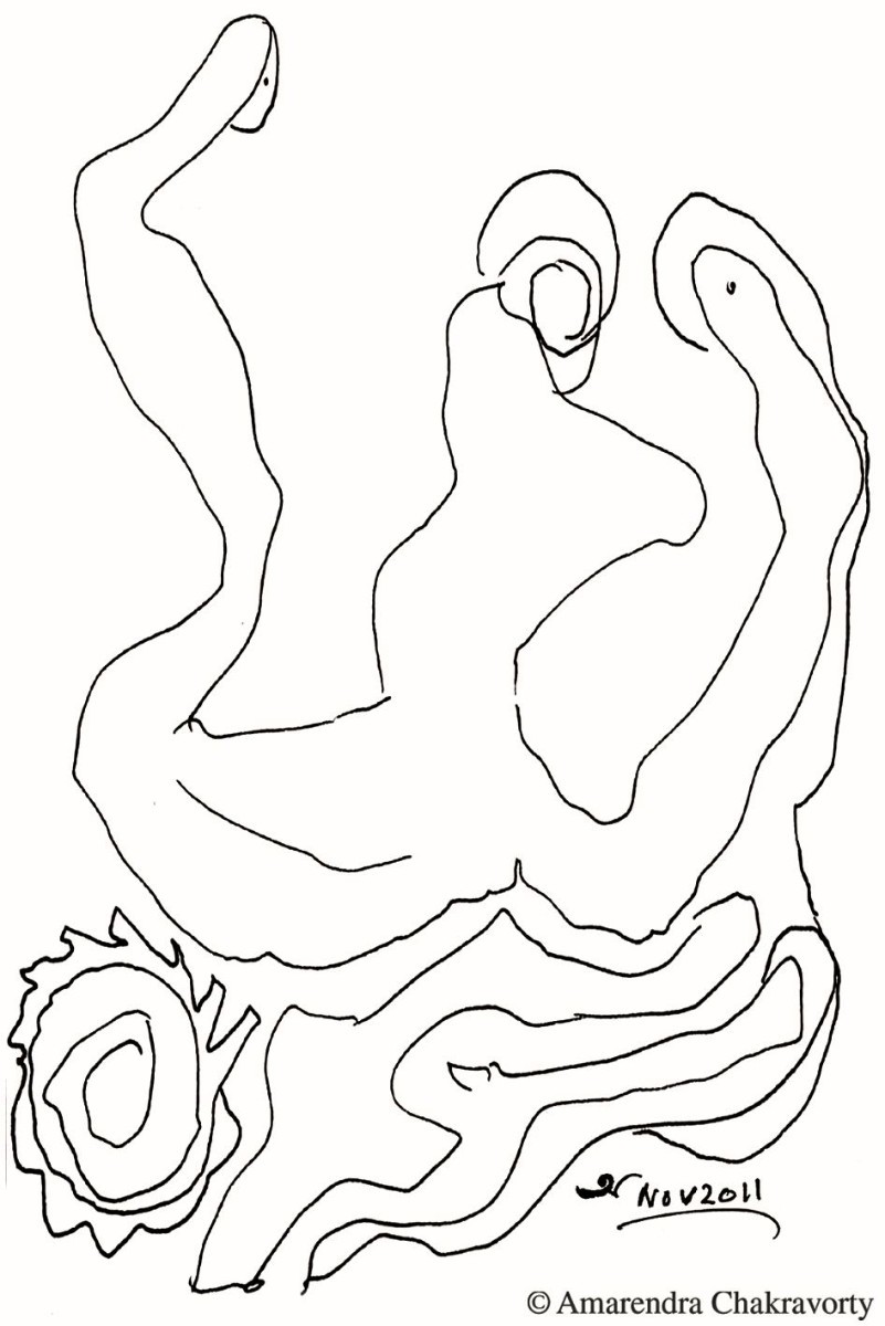 আঁকিয়ে চরিত্রটি আমাদের প্রাচীনতম । জীবনে কখনও ছবি আঁকেননি এমন মানুষ পাওয়া অসম্ভব নয়, দুষ্কর। বেড়ে ওঠার সঙ্গে সঙ্গে অবস্থা এবং অবস্থানগত বাস্তবতায় আঁকিয়ে সত্তাটি বেশির ভাগের মিলিয়ে যায়। কারও কারও সে চরিত্রটি ঘুমিয়ে থাকে জেগে ওঠার বিপুল সম্ভাবনায়। শৌখিন চিত্রকরদের বিশেষ কারও ক্ষেত্রে এই ঘুম ভাঙা চিত্রকর সত্তাটি ফেরে দারুণ সম্ভাবনা নিয়ে । রবীন্দ্রনাথ তার অন্যতম উদাহরণ,শুরু করেছিলেন সত্তর বছর বয়সে! সত্তরে শুরু করে বিরামহীন এঁকেছেন, বলা বাহুল্য সেইসব চিত্রকলা আমাদের আধুনিক চিত্রকলার দিক নিদর্শন দিয়েছে কেবল তা নয়, এগুলো আমাদের শিল্পের অসামান্য সম্পদ। শিল্পী অমরেন্দ্র চক্রবর্তীও ছবি আঁকা শুরু করেছেন সত্তর বছর বয়সে। রবীন্দ্রনাথের বয়সটাই তিনি বেছে নিয়েছেন ছবি আঁকার জন্যে তা নয়। এই বয়সে দাঁড়িয়ে তাঁর ছবি আকার মন সপ্রতিভ হয়েছে, রবীন্দ্রনাথের সঙ্গে মিলে যাওয়াটা কাকতলীয়। দীর্ঘ দিনের নানান অভিজ্ঞতার পলি জমে তাঁর ভেতরটা যেভাবে তৈরি হয়েছে তারই ছাপ পড়েছে তাঁর আঁকা ছবিতে।