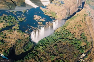 আকাশ থেকে তোলা জিম্বাবোয়ে-জাম্বিয়ার মাঝে ভিক্টোরিয়া জলপ্রপাত