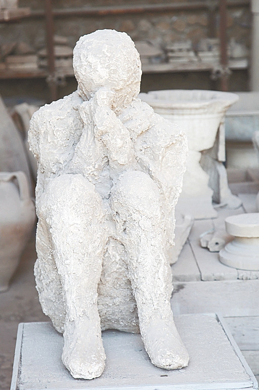 ইতালির ভিসুভিয়াসের অগ্ন্যুৎপাতে শ্বাস নেওয়ার চেষ্টার অবসানে এই ভঙ্গিতেই মারা গিয়েছিলেন এই পম্পেইবাসী। প্লাস্টার অব প্যারিসে তারই প্রতিমূর্তি।